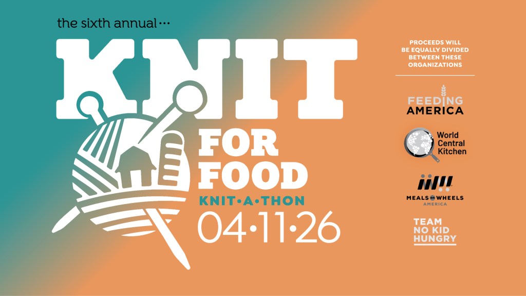 For my fifth time, needles are at the ready for 12 hours of knitting. Cheer us on, join us, donate, all welcome. As long as food insecurity affects so many Americans, I knit for food.